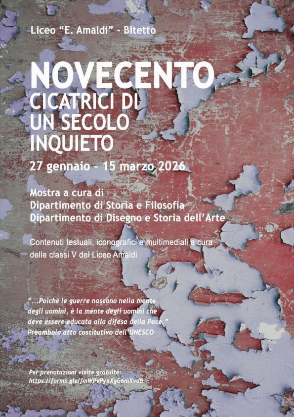 Il Liceo Amaldi , in linea con quanto auspicato dal MIM, ha trasformato il tempo della memoria e del ricordo in un percorso attivo di studio e riflessione critica per i suoi studenti. Nasce così la mostra – di storia ed arte – sulle cicatrici del secolo scorso: un itinerario di immagini, documenti e riflessioni per non dimenticare.